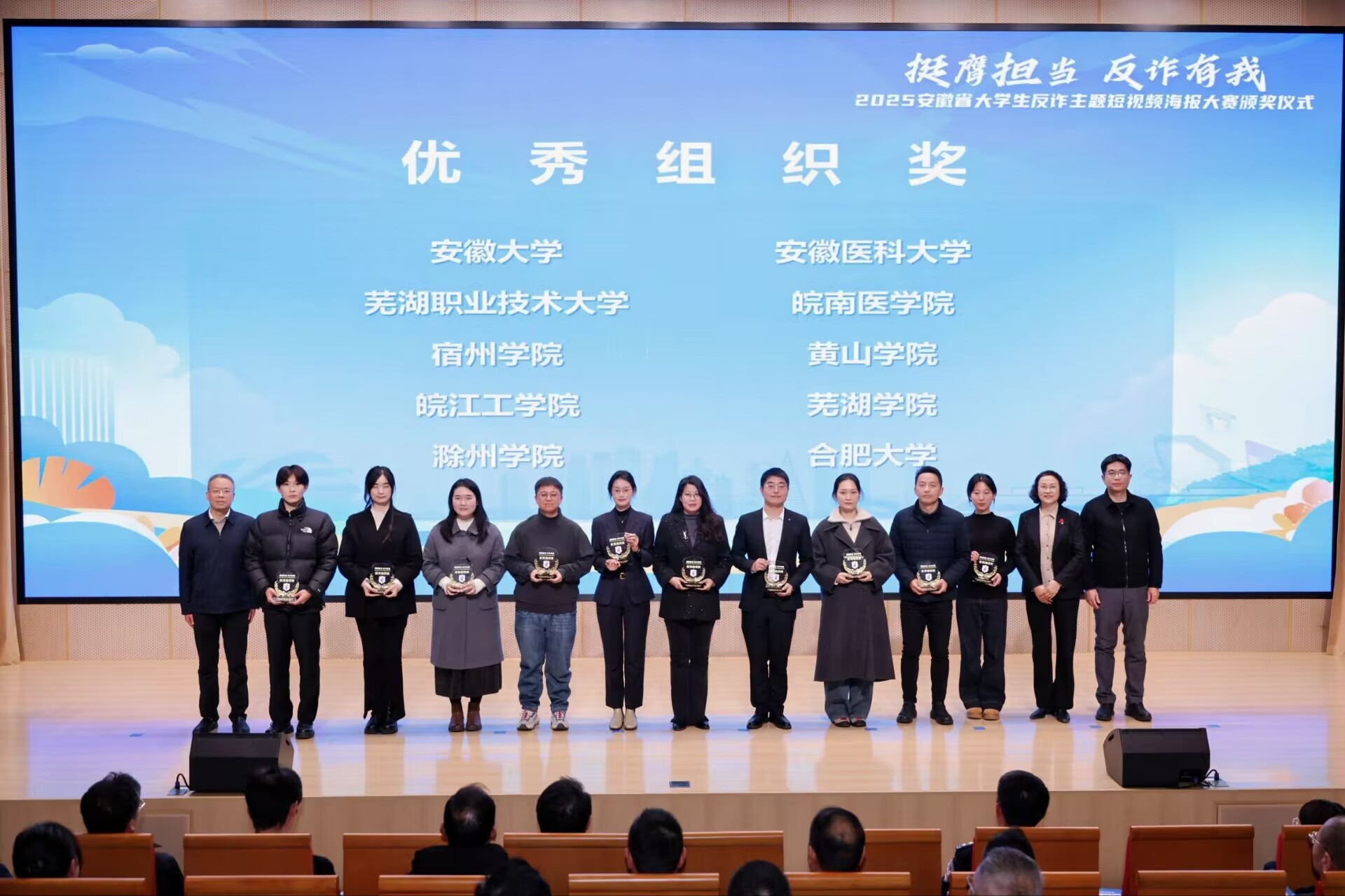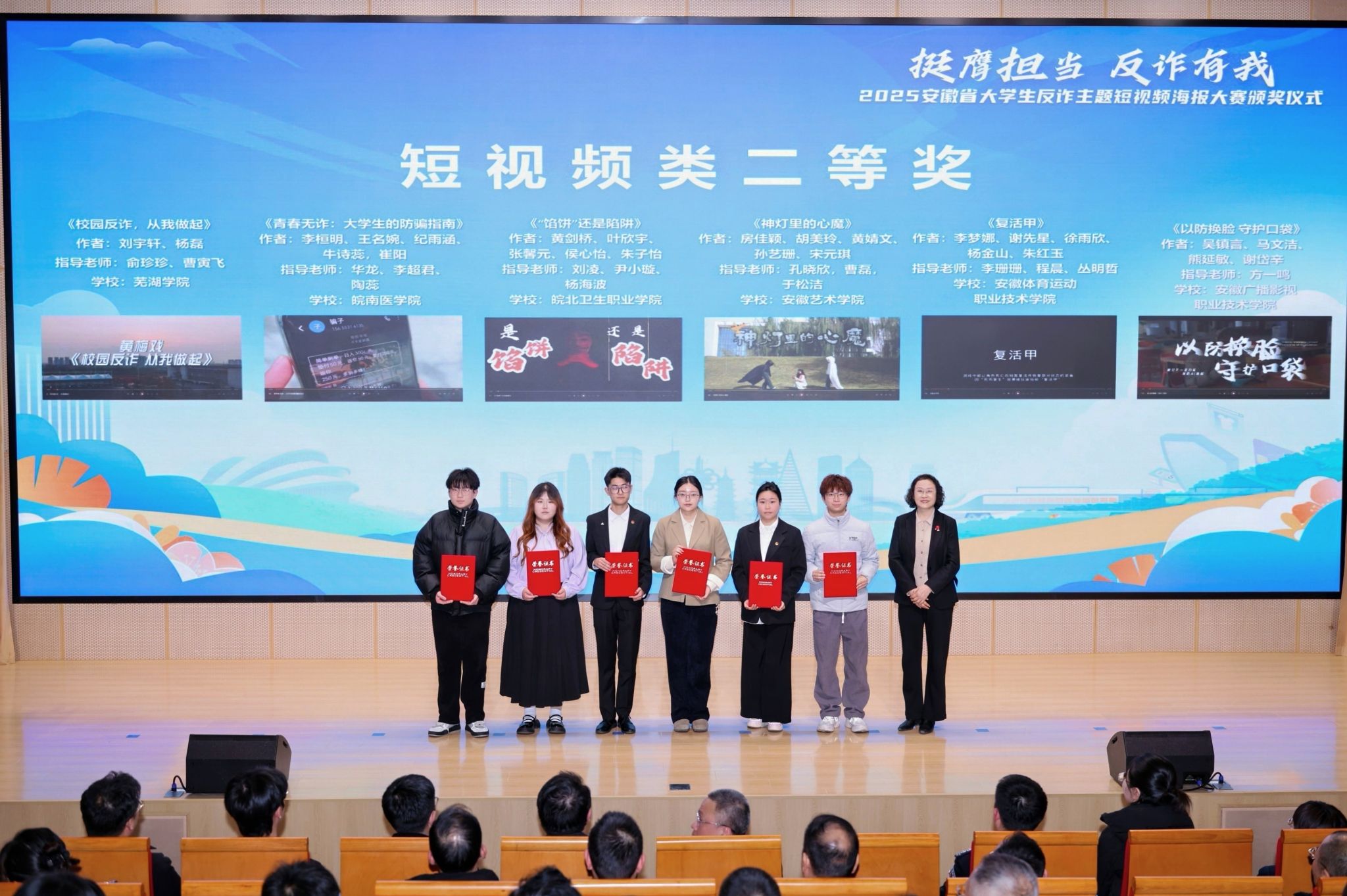 近日,由安徽省通信管理局、安徽省公安厅、安徽省教育厅、共青团安徽省委员会、安徽省学生联合会等部门联合主办的2025年全省大学生反诈主题短视频海报大赛评选结果揭晓,我院学生李桓明等同学创作的反诈主题短视频作品《青春无诈:大学生的防骗指南》在全省众多参赛作品中脱颖而出,荣获大赛短视频组二等奖,我校获优秀组织奖。